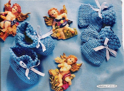 Sapatinhos para menininhos ou menininhas. Lindos, de croche. Fonte: