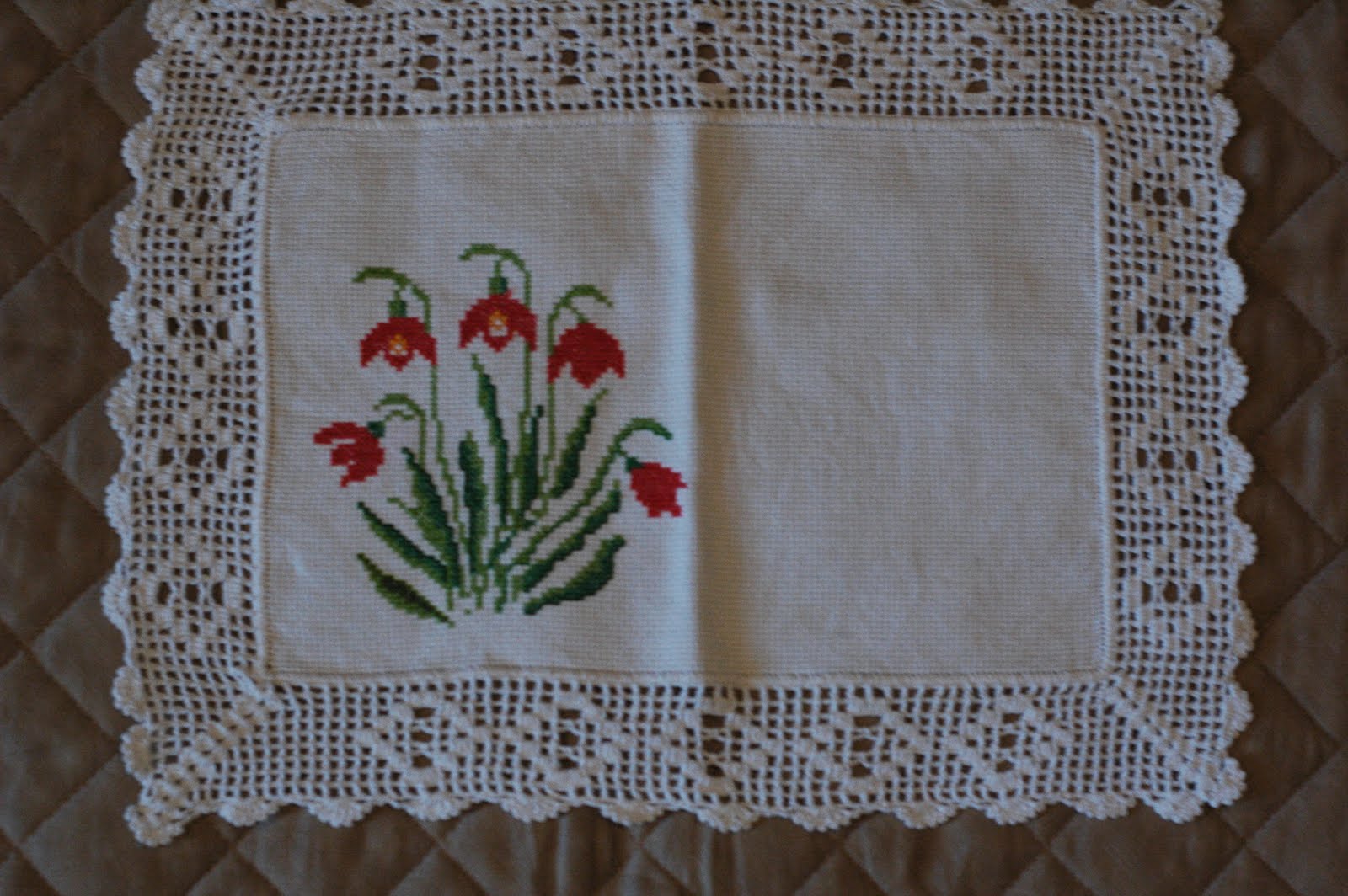 ponto V duplo com 2 correntinhas em toda carreira