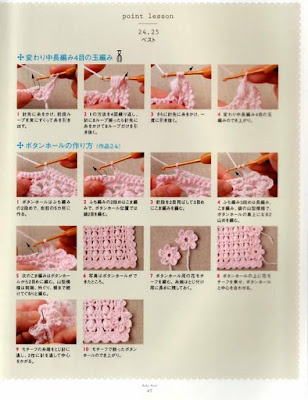 Alça da bolsinha em pb e acabamento em ponto pipoca.O meio da bolsa, para combinar com o gorrinho, eu fiz pa em V.