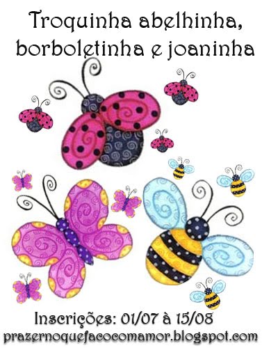 Estou participando da troquinha da Suzaninha:http://prazernoquefacocomamor.blogspot.com/2010/07/troquinha-abelhinha-borboletinha-e.html