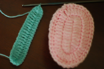 Estudei-o bem, então percebi que o soladinho foi crochetado com pontos interlaçados,dando mais resistencia ao solado.
