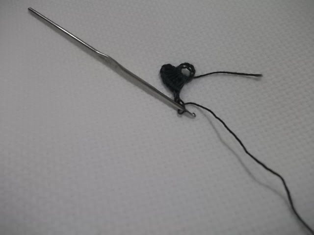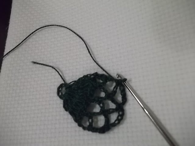 Primeira carreira-Inicia com 7 correntinhas e fecha o círculo com um ponto baixo.