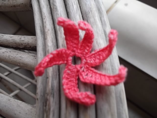 Flor de croche. Pode ser aplicada ou servir como folha ao ser crochetado com linha verde e aplicado junto com florzinnhas.