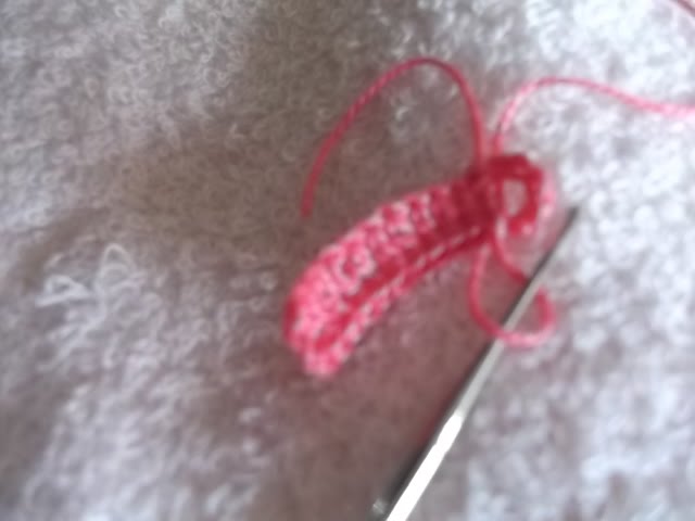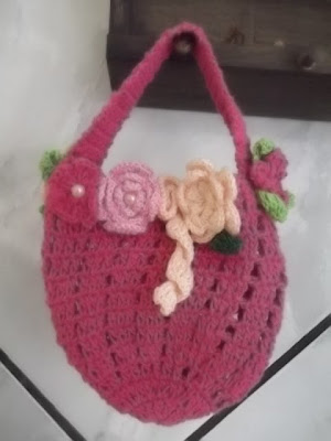 Executada em barbante rosa pink e flores em vários tons de rosa.