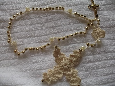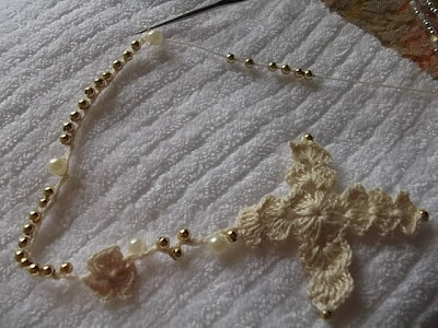 Cruz do tercinho pronta. Vou usar uma linha mais fininha, quero que fique menor, mais delicado.