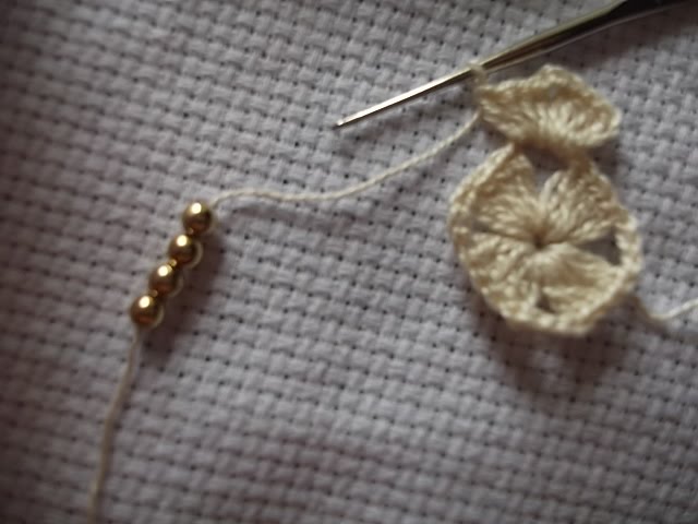 Proximo as contas grandes são 3 correntinhas, assim até fazer toda a volta.