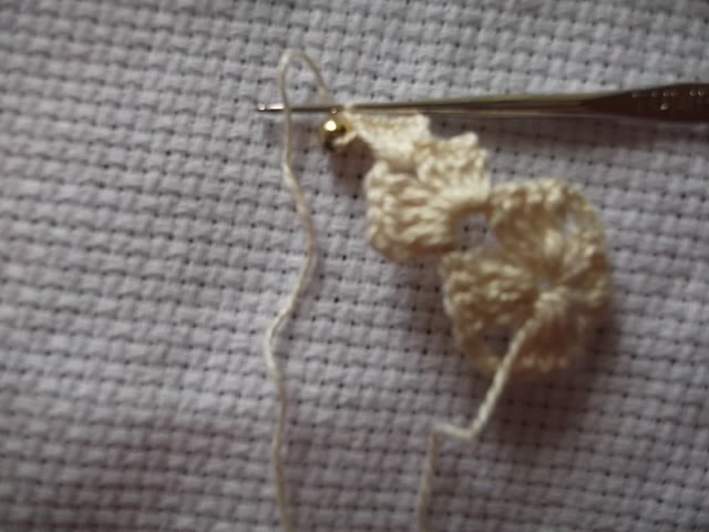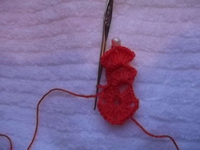 4)Vire o croche e faça pontos baixímos em cima dos 4 pontos altos até chegar nas correntinhas.
