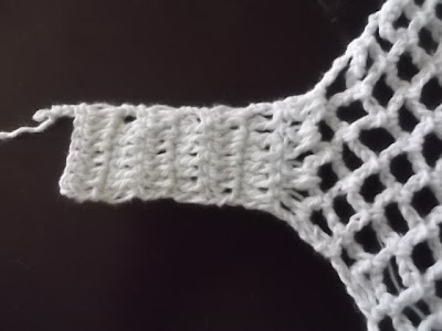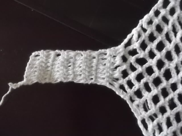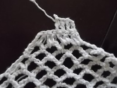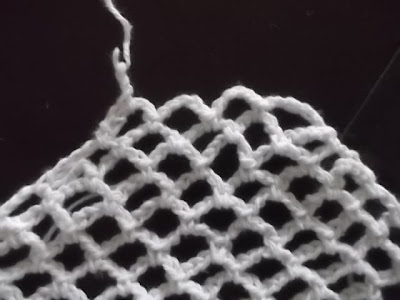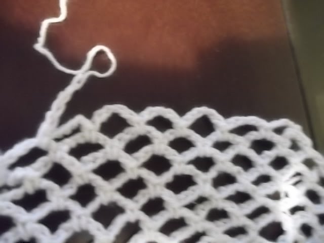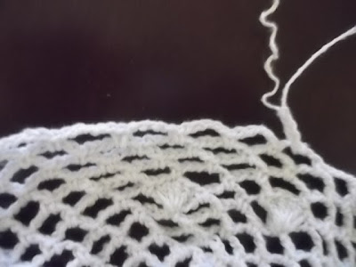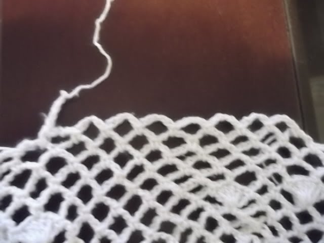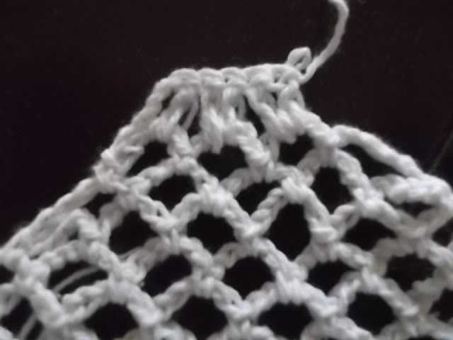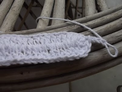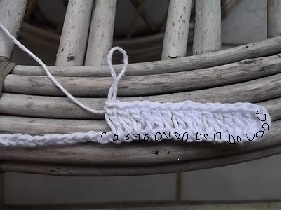 Marcar o meio. Amarrar a linha e fazer 5 correntes.
